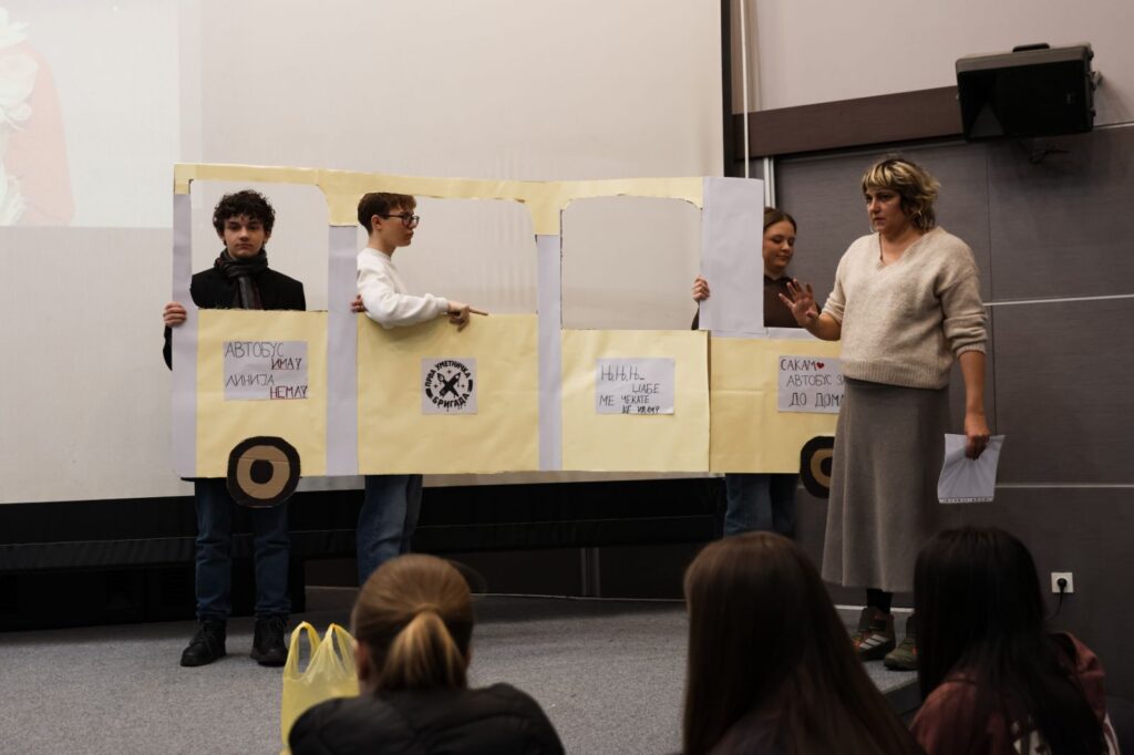 Преку процесите учесниците учеа како да раскажуваат, да чувствуваат и да делуваат без зборови. Учеа како преку движење, гест и тишина се создаваат моќни лични и општествени приказни.Заедно со менторката Билјана Крајчевска, младите зборуваа за своите потреби, за скратените и можните можности.